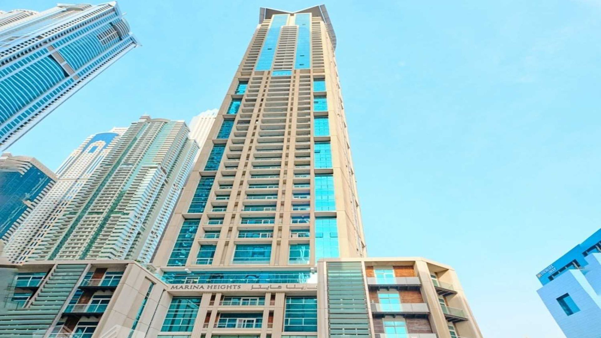 Modern 2-bedroom apartment with skyline views in the prestigious Marina Heights Tower. Monthly stays from AED 17,000 (low season) up to AED 25,000 (peak season). Bills included. Managed by DVH Holiday Homes.