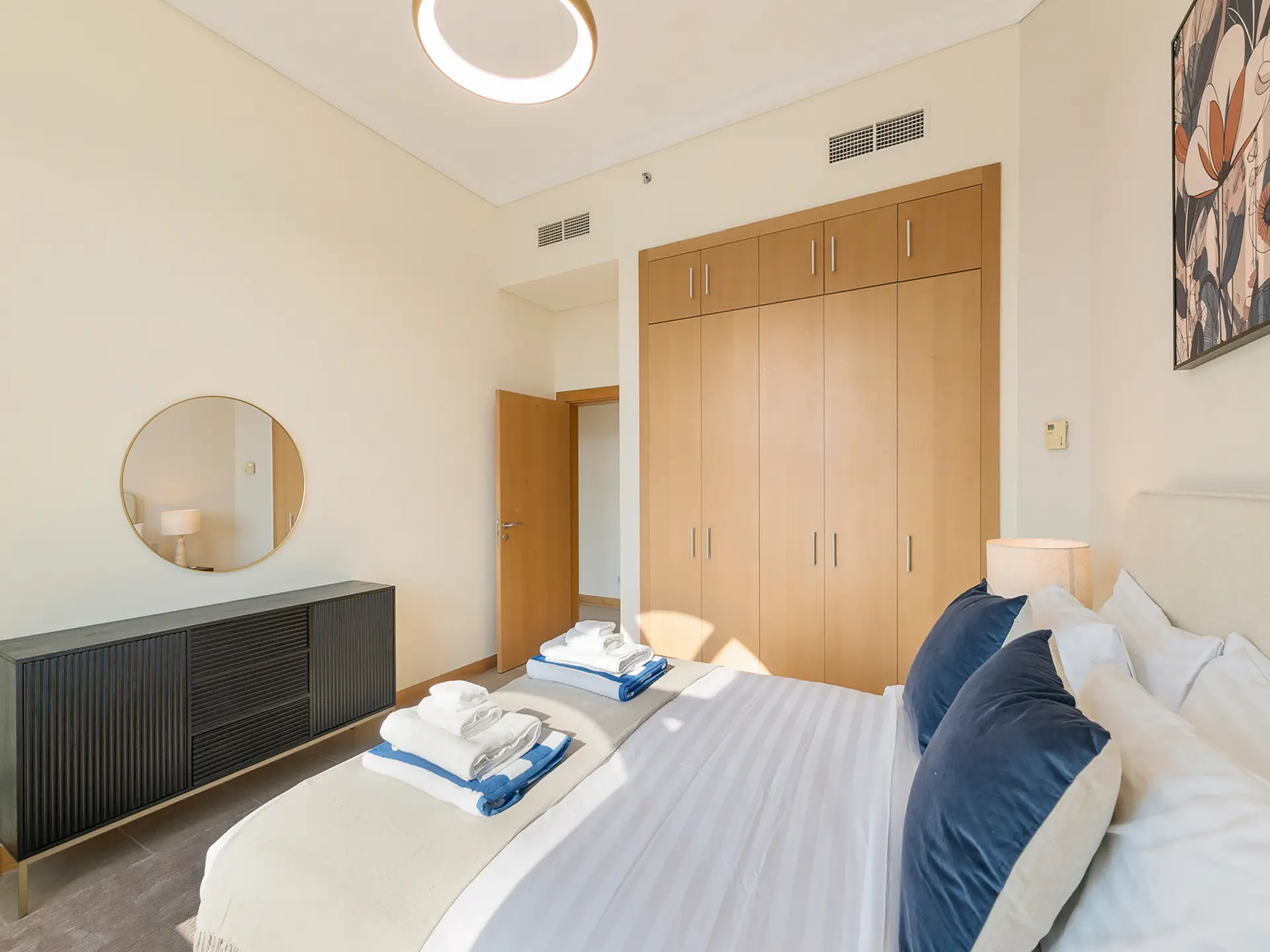 Situated on the Penthouse Floor of this beachfront community on Palm Jumeirah, surrounded by lush greenery with a private beach club and pool, this splendid three-bedroom plus maid’s room holiday apartment is a haven of comfort and elegance. It is ideal for families, couples, or friends looking for a beach getaway for holidays or longer stays. The apartment is tastefully furnished with access to amenities and all the facilities, ensuring a luxurious and comfortable stay. From high-speed Wi-Fi to plush furnishings, we’ve thought of everything to make your stay memorable, and you’ll want to return time and time again.